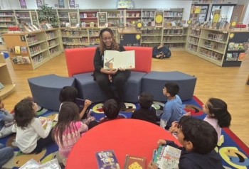 카렌 러시(Karen Rush) 론다 젠킨스(Rhonda Jenkins)는 학생들에게 책을 읽어주고 있다.
